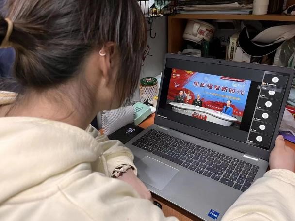 会议伊始,刘慧慧同学给大家展示了,习近平总书记去冰雪基地看望运动健儿的新闻与习近平总书记给运动健儿的回信和回信精神。之后又播放了以习近平新时代中国特色社会主义思想与怎么理解新时代的丰富内涵为主题的短片。