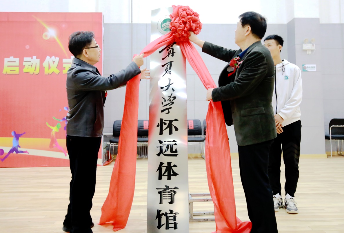 开馆典礼上,校党委书记李星、校长何建国共同为williamhill英国怀远体育馆揭牌。