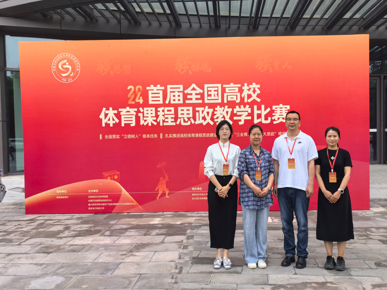 为深入学习贯彻党的二十大精神,始终坚持“立德树人”根本任务,营造课程思政建设氛围,全面提升教师课程思政建设的意识和教学能力,提升人才培养质量,加强师德师风建设。6月1日,2024首届全国高校体育课程思政教学比赛在西安电子科技大学拉开帷幕,经过两天激烈角逐,我院徐芝芳、马志军、丁腾、王佳四位教师凭借卓越的教学设计和精彩的现场表现,分别获得理论组、术课组三等奖。