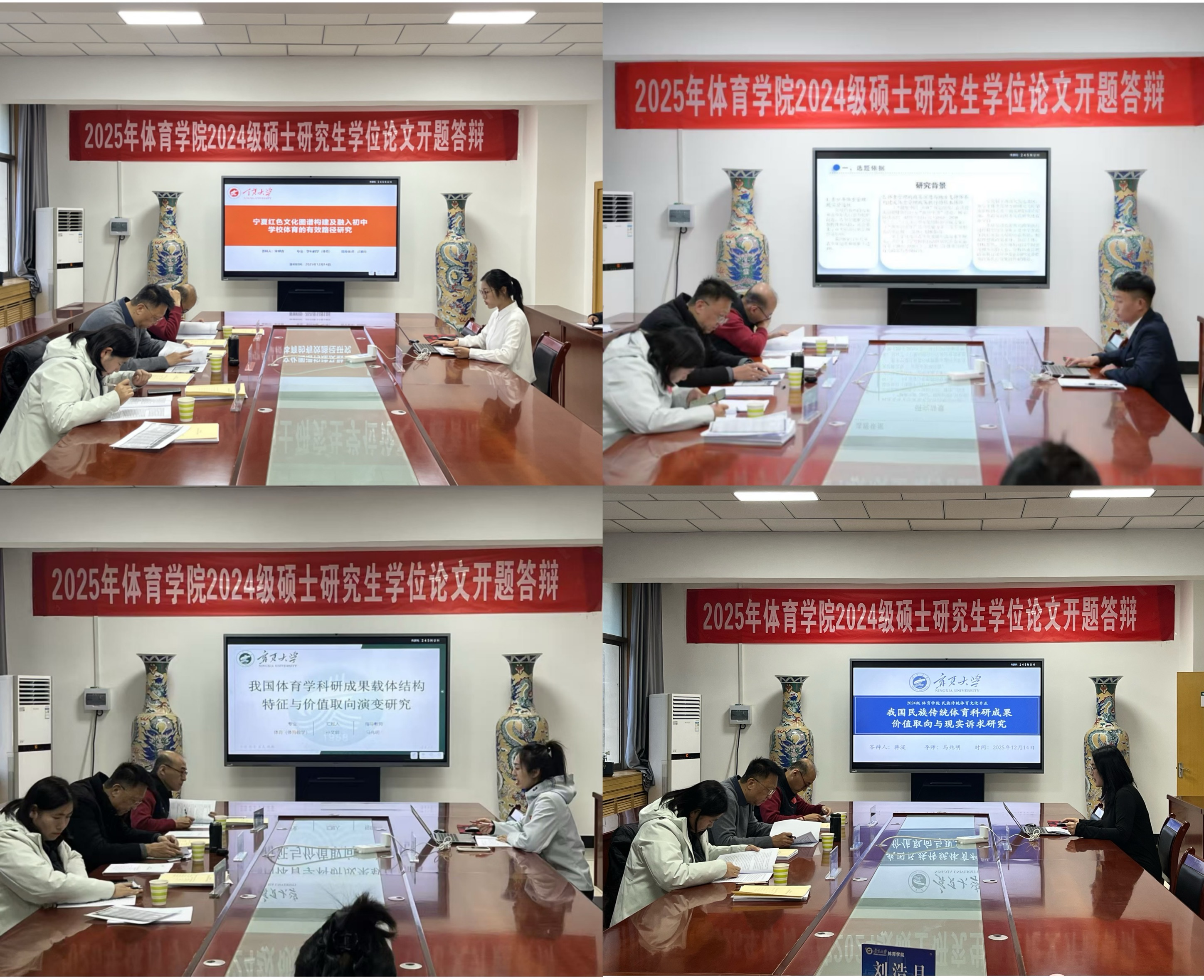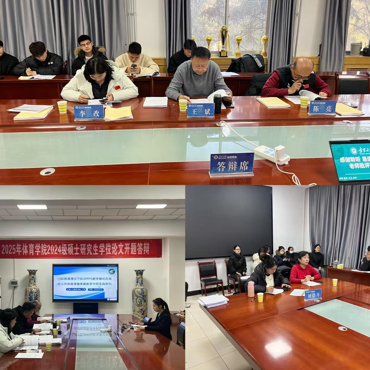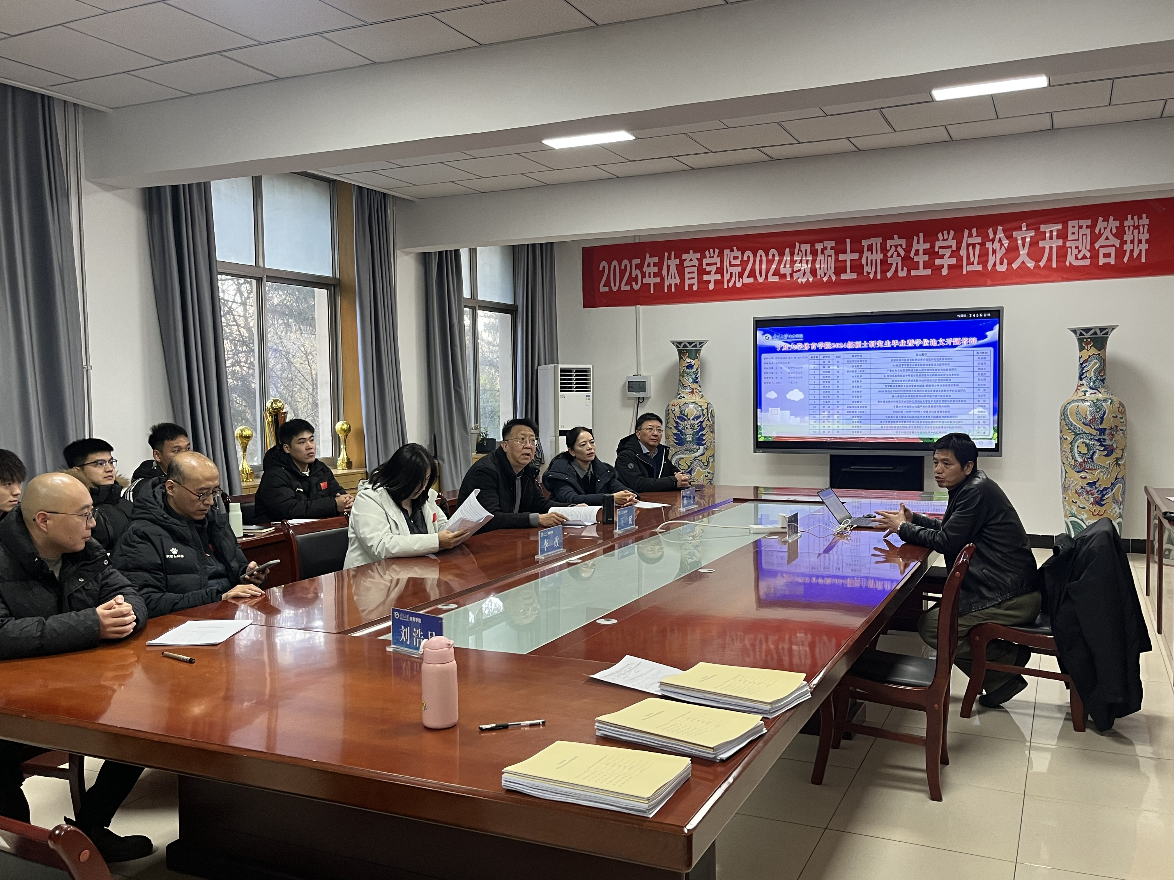 参加开题答辩共30名研究生,答辩会上,同学们围绕选题背景、研究意义、国内外研究现状、研究思路与框架、研究设计与方法、预期成果及创新点等核心维度,结合自身研究方向展开条理清晰、重点突出的阐述。选题聚焦AI 赋能体质健康、红色文化融入体育教学、民族传统体育活化、运动模式健康干预等前沿实践主题,充分展现了对体育学科热点与地方实践需求的敏锐把握。