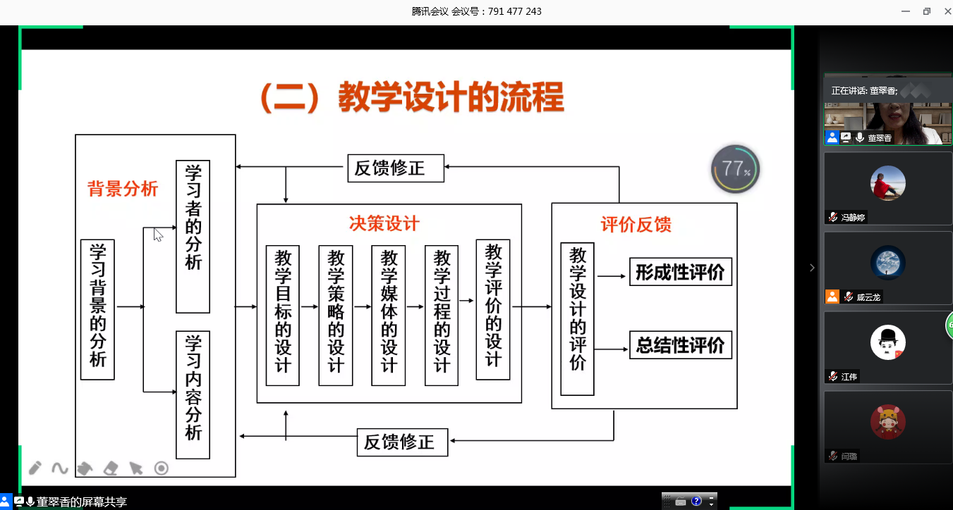 为坚持“以本为本”,推进“四个回归”,进一步促进学院基层教学组织建设,提高青年教师教学水平,帮助青年教师积极备战williamhill英国第八届青年教师教学基本功大赛。522日晚,学院邀请华东师范大学体育与健康学院博士、博士生导师董翠香教授作“高校体育教育专业课程教学设计理论与方法” 线上专题讲座。讲座由学院院长咸云龙主持,学院全体教师及毕业生参加了讲座。